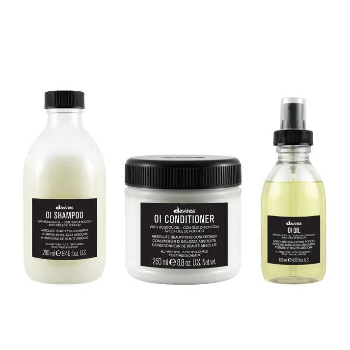 Este Box Set combina el champú y acondicionador OI con el suero de brillo OI Oil para mejorar la suavidad y el brillo. El aceite multiusos también facilita el peinado del cabello y deja el cabello protegido sin apelmazarlo.